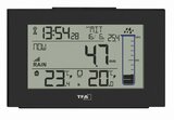 Compleet TFA weerstation met regenmeter die een bereik heeft van 60 meter in open veld. Verder heeft het weerstation een radiogestuurde klok, datum- en weekdagweergave, binnen- en buitentemperatuurweergave en laat het neerslaggegevens met geschiedenis zien. Met een compact formaat van 150 x 96 x 44 mm past het gemakkelijk in elke ruimte en dankzij de elegante zwarte kleurstelling misttaat hij nergens. Het weerstation werkt op 2x AA batterijen (niet inbegrepen) en wordt geleverd met een buitenregenmeter die ook op 2x AA batterijen werkt. De garantieperiode bedraagt 2 jaar.